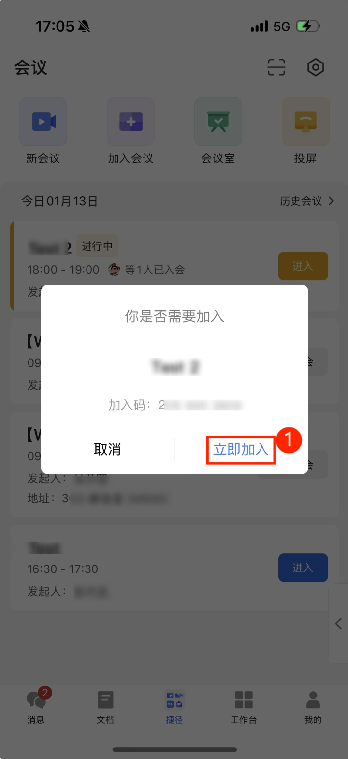 当手机的剪切板复制了会议信息中的【会议码/会议链接】,当进入到会议首页时也将会自动识别到已复制的会议信息,支持立即加入会议。