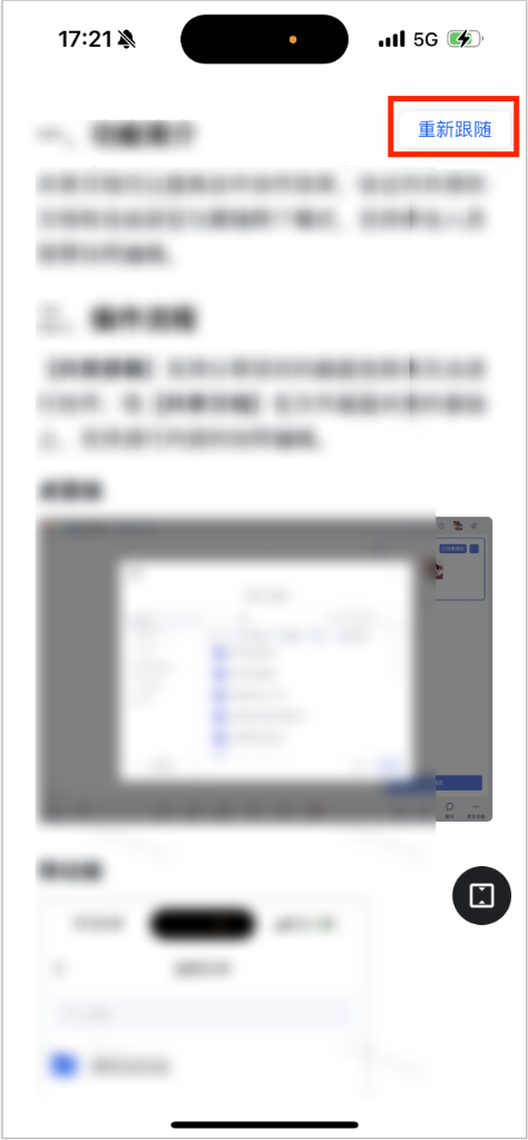 被分享人可以根据自己浏览速度,自由浏览文档内容,或者一键【重新跟随】。