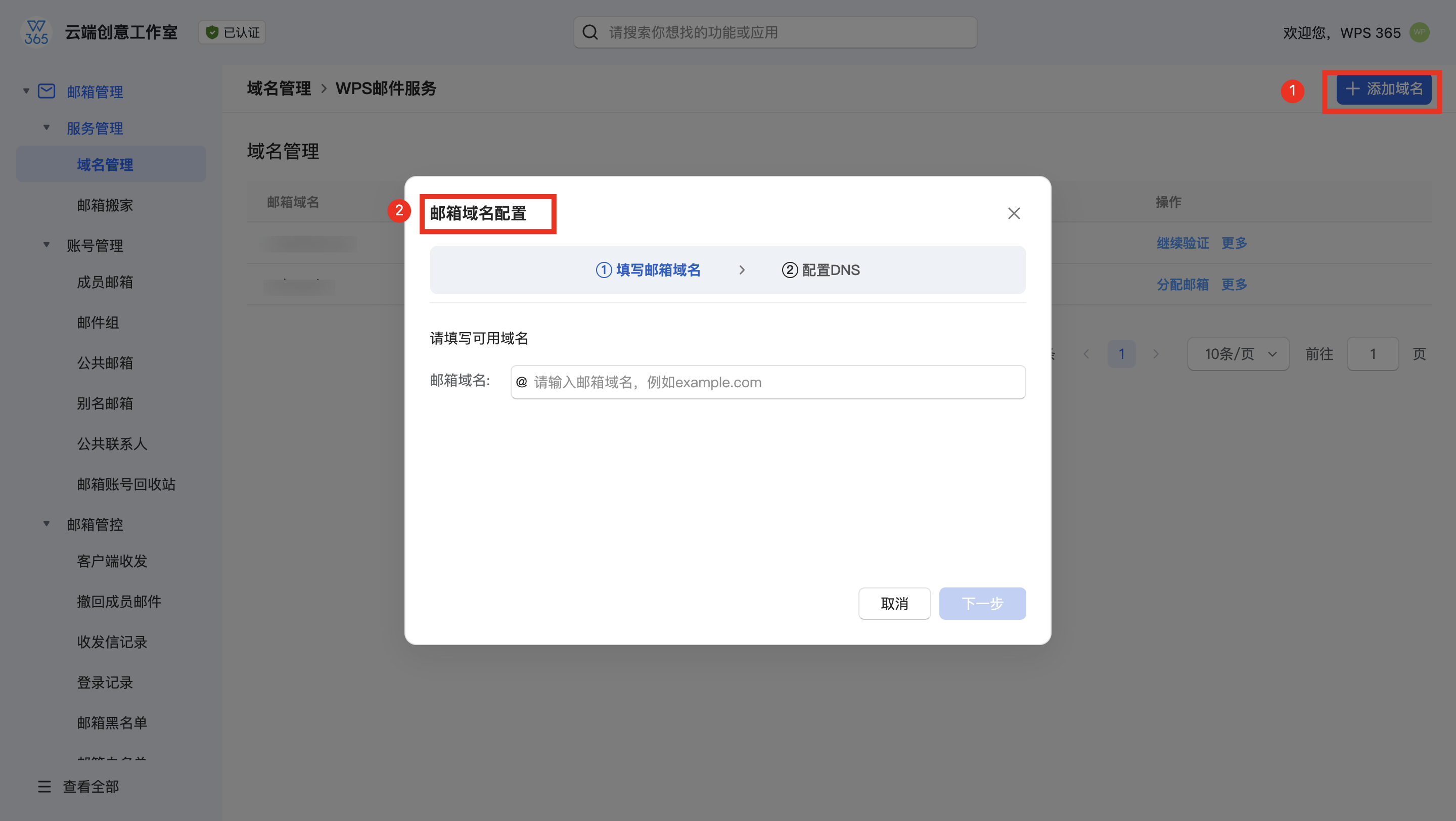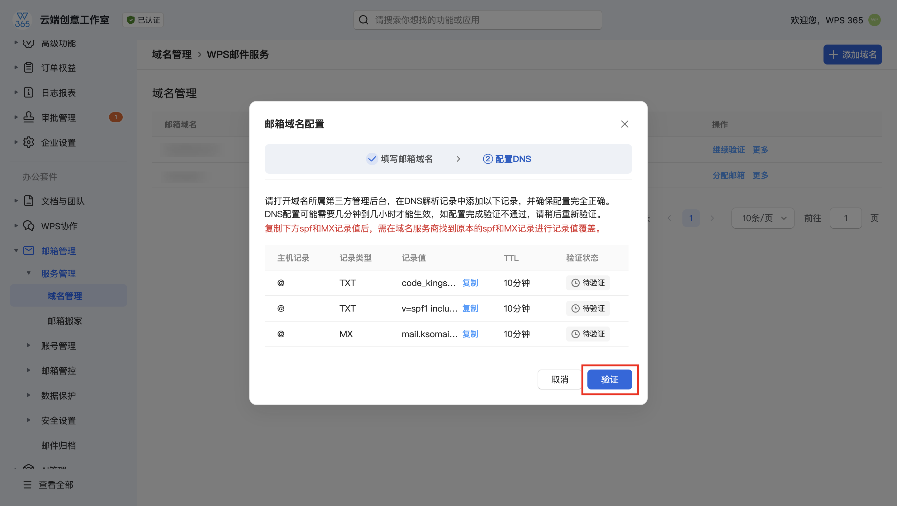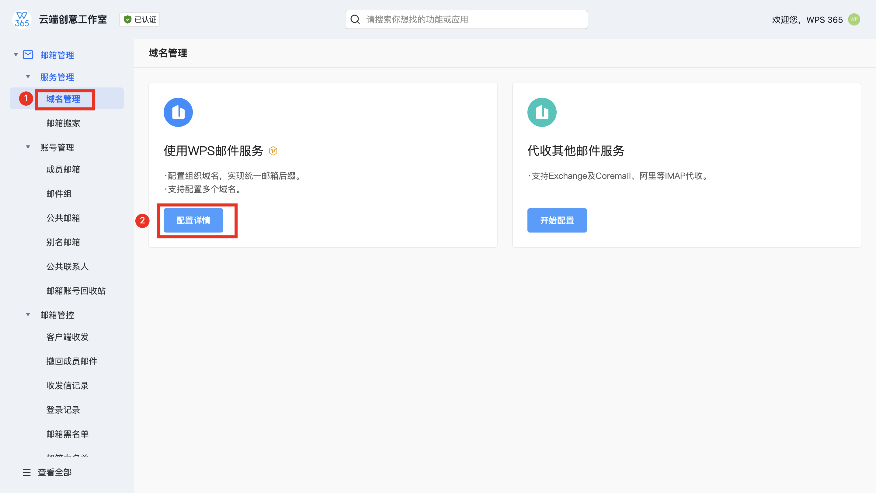 管理员配置WPS邮箱域名